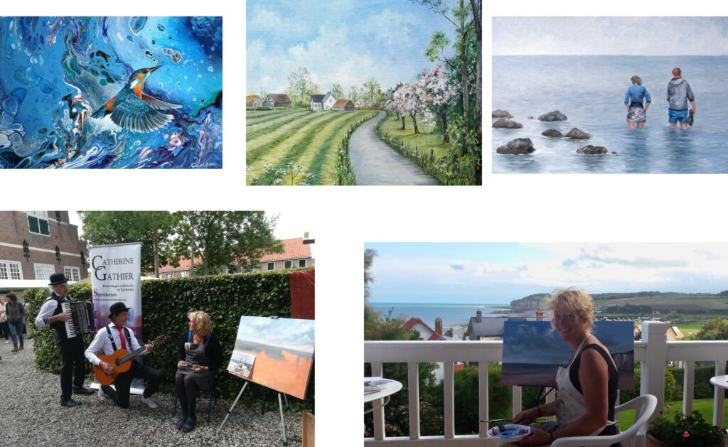 Catherine Gathier werkt als zelfstandig beeldend kunstenaar sinds 1998. Zij schildert met olieverf en acryl in een voornamelijk realistische of figuratieve stijl. Catherine is autodidact in die zin dat zij geen Academie heeft gevolgd. Vanaf eind jaren `80 volgde ze wel vele lessen, summerschools en cursussen. Eerst bij een plaatselijke vereniging, later meer gericht bij kunstenaars waar zij specifiek iets van wilde leren. Leraren als Hans Leijerzapf, Murielle Schellings, Mieke Schaper en Joke Frima scherpten haar kennis en kunde. Af en toe leidde haar zoektocht naar de juiste input haar zelfs over de grens. Zij volgde meermaals zomeracademies bij Joke Frima en Ghislaine Segal in Frankrijk.
