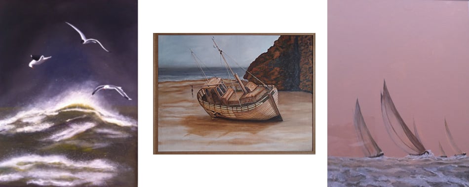 Schilderkunst met als inspiratiebron water, zee, schepen en dieren